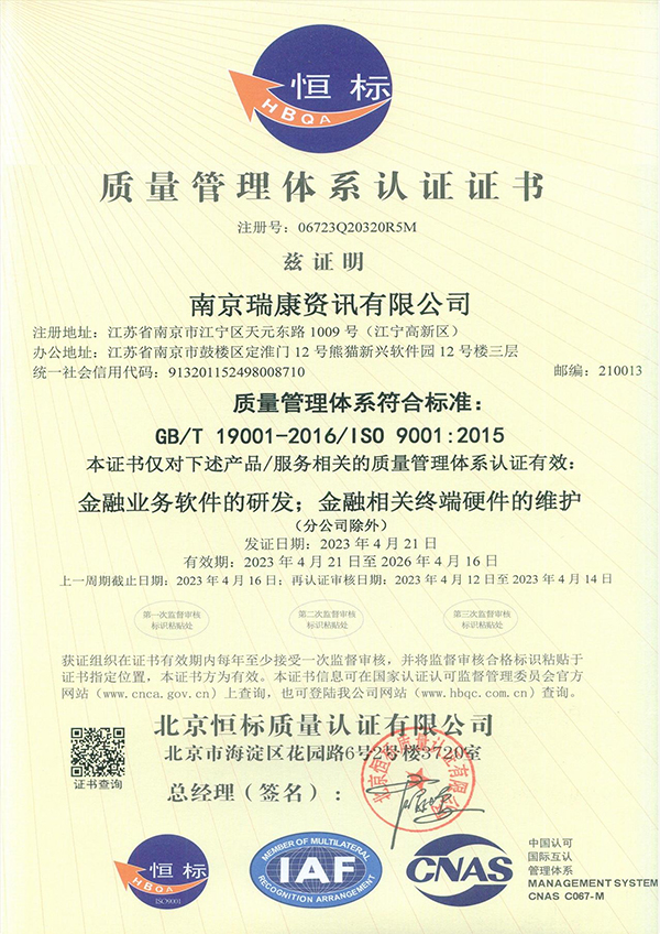 質(zhì)量管理體系認(rèn)證證書(shū)